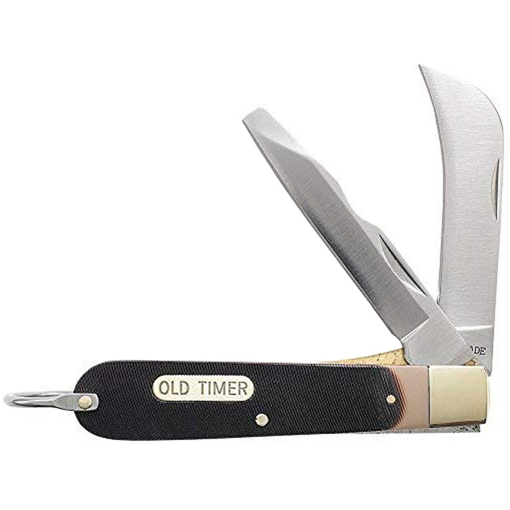 Old Timer Electrician’s Lockblade Hawkbill Traditional Pocket Knife, 7Cr17MoV High Carbon Stainless Steel Hawkbill Blade and Blunt Tip Blade, OT Saw Cut Handle, Nickel Silver Bolster, Brass Pins & Liners, Heat Treated Backspring, Stainless Steel Shackle.