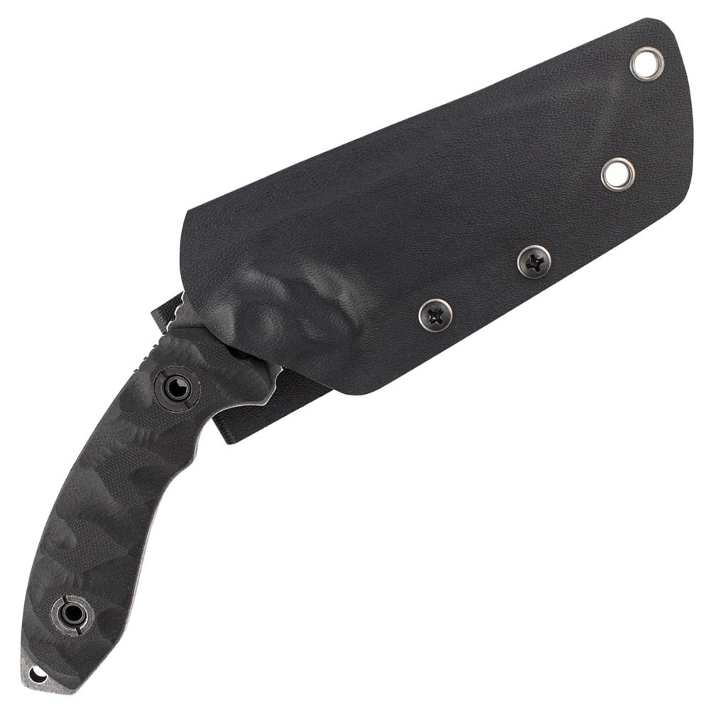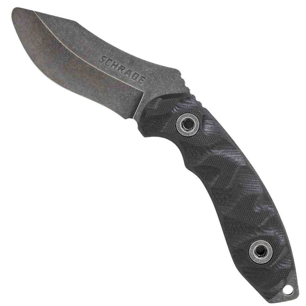 Improve your tactical blade skills without impairing your hands! This fixed blade trainer is a dull-edge version of the SCHF23 Tactical Knife. It features a full tang clip point blade with a safe rounded tip and stonewash finish. The ergonomic drop handle design places the blade at a 45° angle to improve chopping power and efficiency. Grooved G-10 scales and jimping along the spine provide positive contact points for a rigid grip. The package includes a molded Kydex sheath with lashing slots and a metal clip.