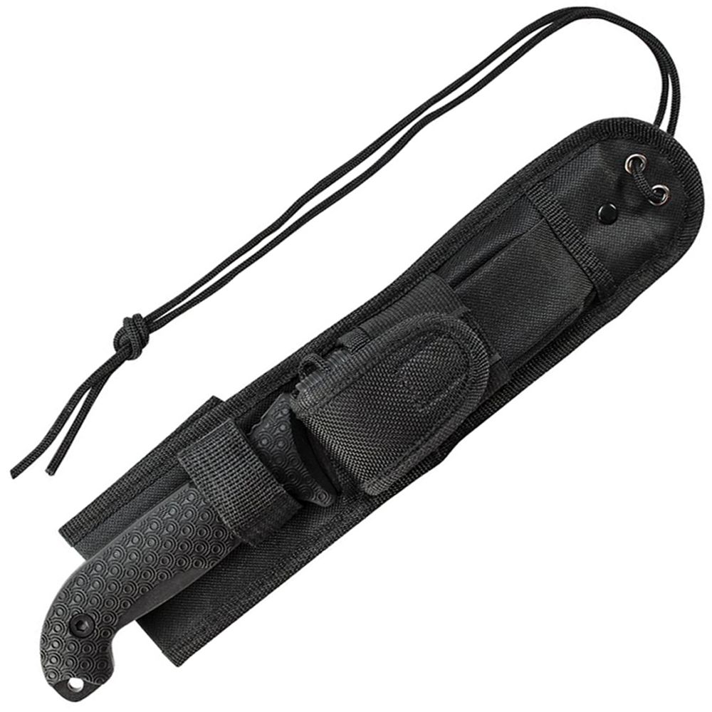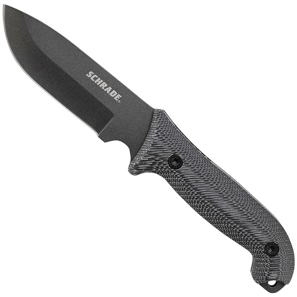 Schrade Frontier Full Tang Fixed Blade Knife, 1095 High Carbon Steel Drop Point Blade with Finger Choil, Ring Textured TPE Handle with Spine and Grip Jimping, Lanyard Hole, Black Polyester Belt Sheath with Ferro Rod and Sharpening Stone.