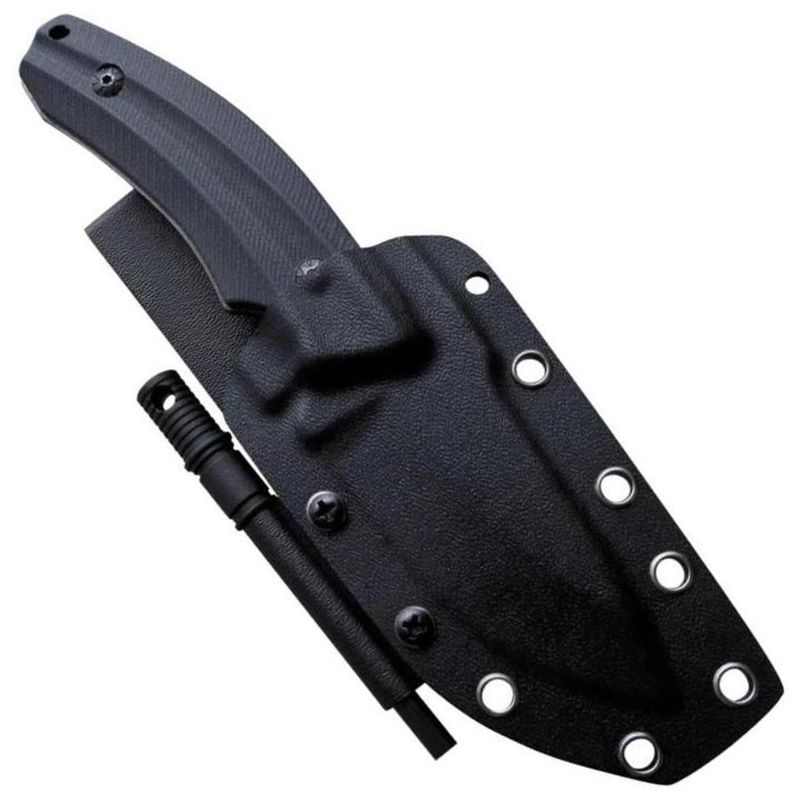 This SCHF58 fixed blade model offers a black G-10 handle and a black finished blade made from High Carbon steel. The SCHF58 offers a compact design ideal for everyday carry yet large enough for difficult cutting jobs. It comes equipped with a molded TPE sheath for belt carry and a bonus fire starter rod.