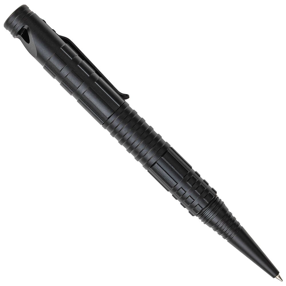 Schrade Survival Tactical Pen, CNC Machined 6061 T6 Black Aluminum, Features Removable Ferro Rod, Storable Striking Plate, Survival Whistle Cap with Pocket Clip, 1 Black Starminen Fine Point D1 Pen Cartridge.