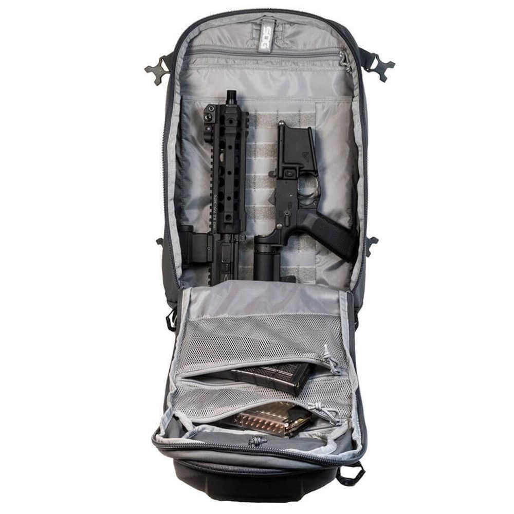 The panel loading main compartment utilizes every cubic inch with multiple interior pockets, padded laptop sleeve, hydration carry, and MOLLE loop field. Accessing the inside main compartment via the Quad-Zip means finding gear from the bottom of the pack doesn’t require unpacking everything on top of it. Any extra or bulky gear can be cinched on to the pack’s side compression straps, attached to the Hypalon MOLLE field, or held on by the Scout’s unique wire long item carry. The top molded panel allows quick access to smaller items Due to the suspension, a fully loaded pack can be carried comfortably whether going for two miles or twenty miles.