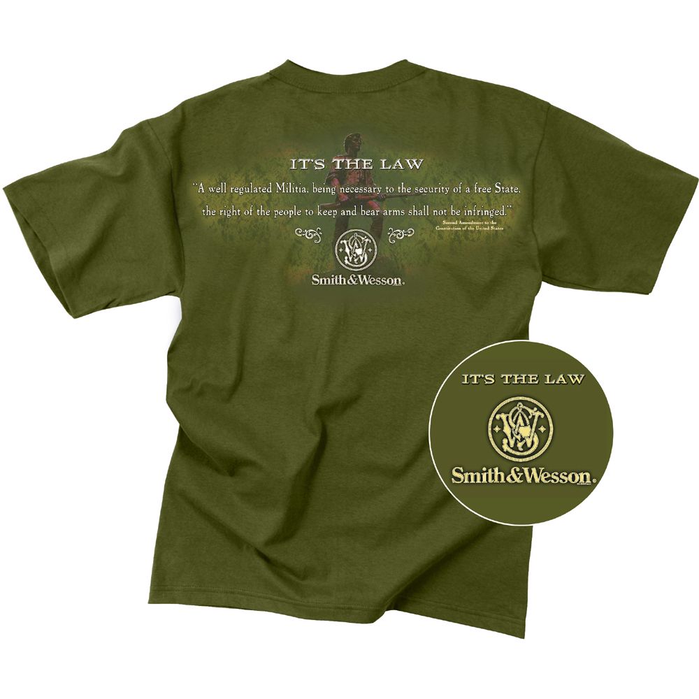 Olive Smith and Wesson 2nd amendment T-shirt is made of 100% cotton. The design of the T-shirt is officially licensed for Smith and Wesson. The design of the T-shirt is exclusive, trendy and much appreciated by people. 5.4 ounce pre shrunk cotton makes these shirts soft, smooth yet durable and long lasting. The shirt is printed on both front and back side. The left front side of the chest is printed. The back design of the shirt is so exclusive with the print which has the second amendment, of constitution of United States. This shirt looks trendy and stylish.