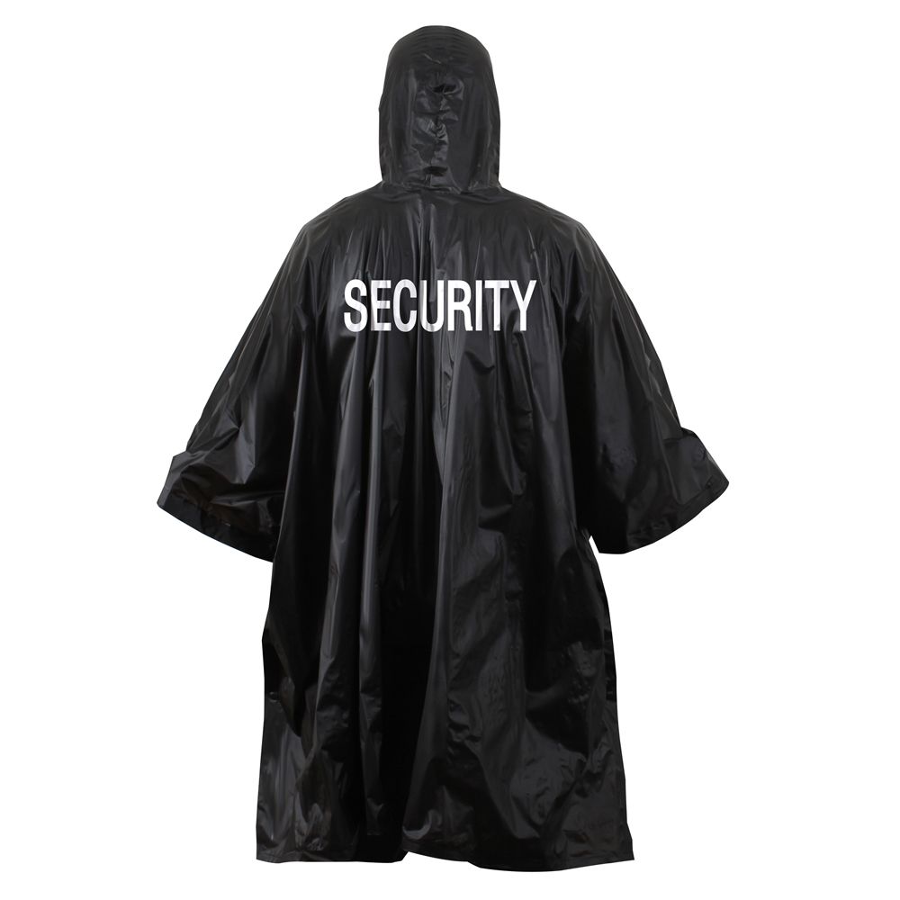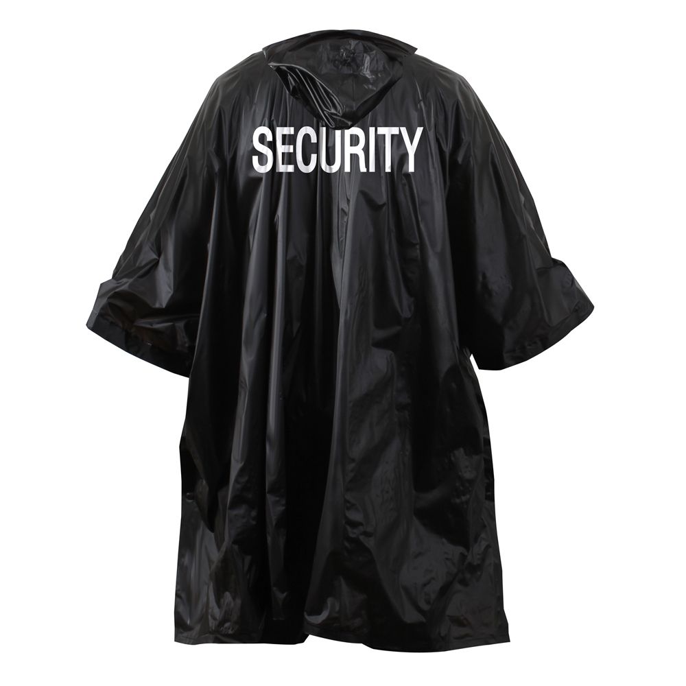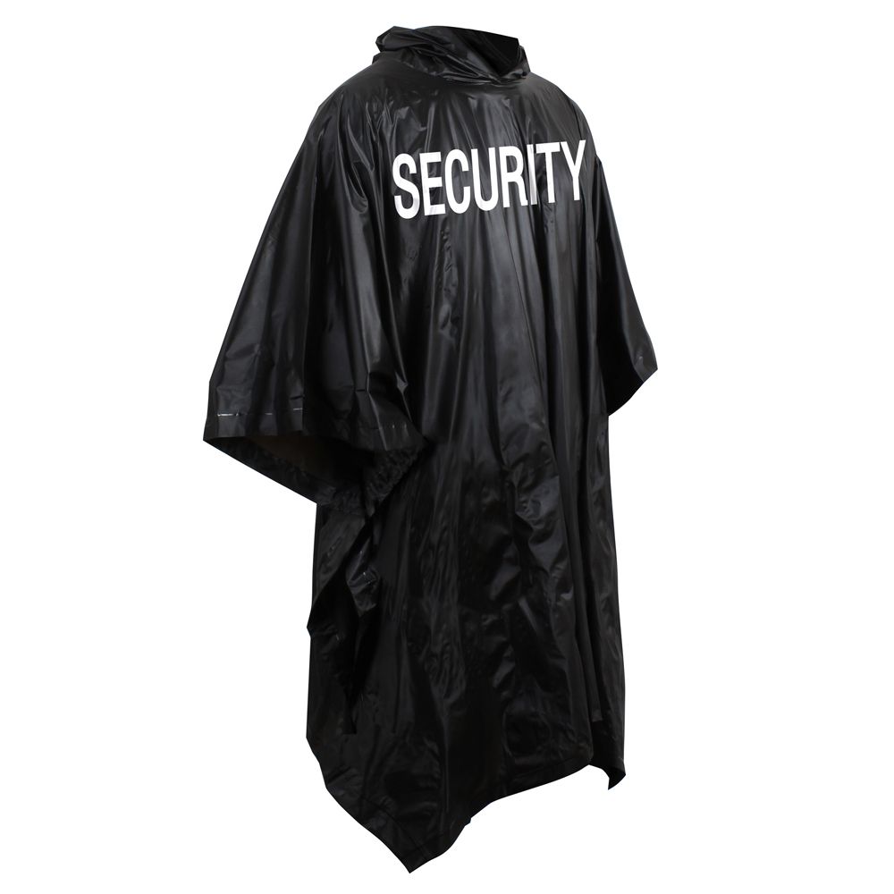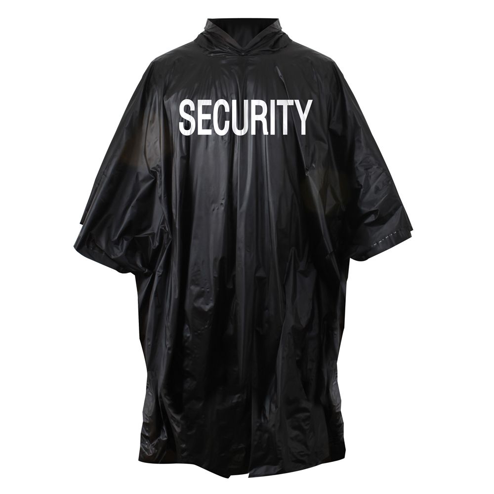 Security Poncho is heat sealed and features a black vinyl with white security printed on both front and back.
