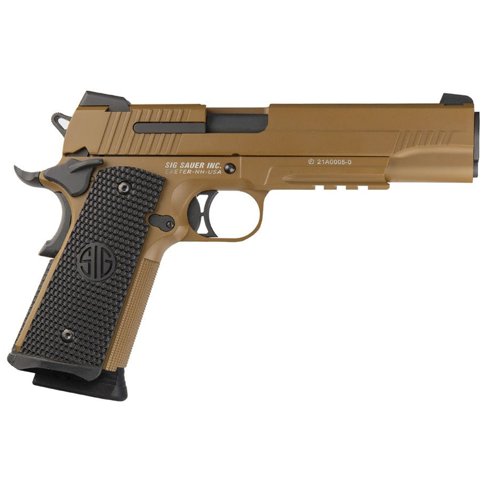 This air pistol is highlighted by a nearly-identical look and feel when compared to the genuine powder-burning version except for the fixed sights and steel BBs conversion. It feeds on a single 12 gram CO2 cartridge to fire semi-auto shots with blowback that adds to the realism. It also boasts a metal slide and a metal frame, and has the same front and rear slide serrations as the original model for improved dependability when cocking. The grip panels feature the same fish scale texturing as the firearm version, and the front strap has fine checkering to ensure a slip-free hold. To yield accurate shots, this air pistol uses fixed front and rear white dot sights, and an under-muzzle Picatinny accessory rail with three slots allows the addition of items such as lights and lasers. The skeletonized hammer and trigger are other aspects of the SIG Emperor Scorpion BB Pistol that screams “realism”. The slide holds fully open and holds back after the last shot too as you’d expect.