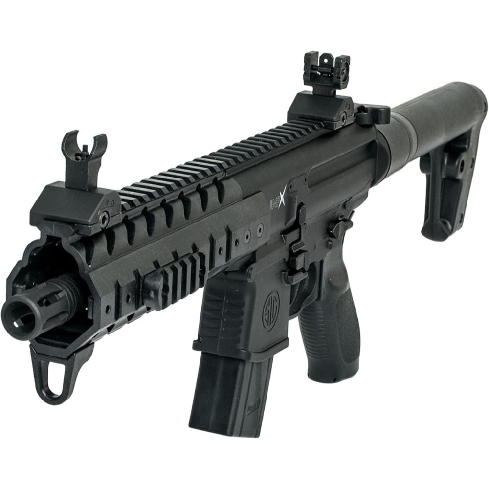 Designed for precision and realism, the SIG Sauer MPX air rifle mirrors its firearm counterpart used by professionals worldwide. Engineered with a similar weight, feel, and controls, this semi-automatic rifle is an excellent tool for training and recreational shooting.