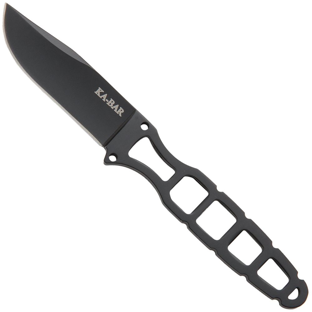 The Ka-Bar Skeleton is a truly bare bones neck knife. This no-nonsense fixed blade cuts like a pro without any unnecessary features. Constructed from a single piece of 5Cr15 stainless steel, it features a skeletonized handle and a clip point blade with an ultra-fine hollow ground edge. The Skeleton comes with a lanyard-ready hard plastic sheath, providing a wide range of everyday carry options.