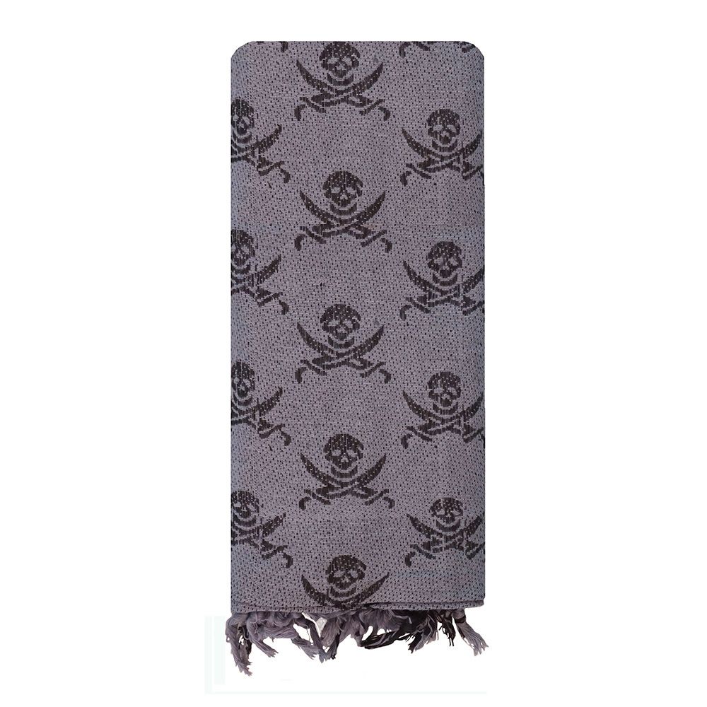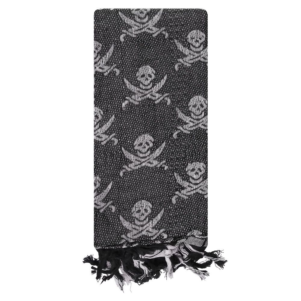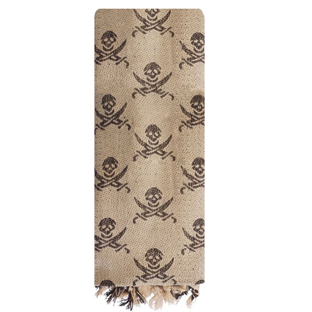 Crafted from lightweight woven cotton, the Arab Shemagh keeps out the sun and dirt without making you sweat. This versatile scarf can be worn wrapped around the head for protection or draped over the shoulders for warmth. Measures 44” x 44” and features the ubiquitous Jolly Roger skull print.