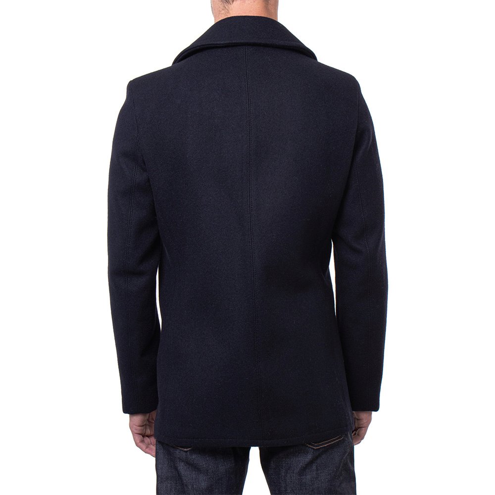 The broad collar, durable buttons, and front slant pockets add to the traditional peacoat style.