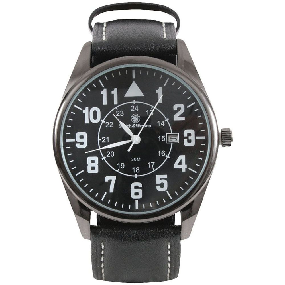 Smith and Wesson Civilian watch is designed by. The watch is trendy in black color with black face. The black color leather wrist band gives the watch a classy look. The leather wrist band is adjustable. The watch has matching black color face with prominent numbers and hands. There is a small provision for date on the face. The watch includes display stand. The Japanese movement precision quartz watch is no doubt most accurate and long lasting. The back side of the dial is made of quality stainless steel. The watch is water resistant to a limit of 30 meters.