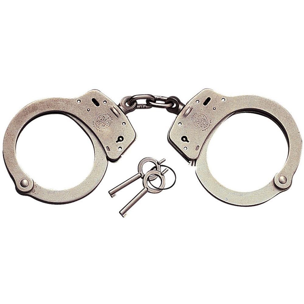 The Smith And Wesson handcuffs are made of carbon steel. The handcuffs have 23 locking positions and meet U.S. National Institute of Justice tests for workmanship, strength, corrosion and tamper resistance. Standard Size Nickel.