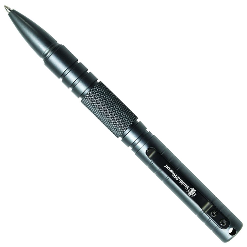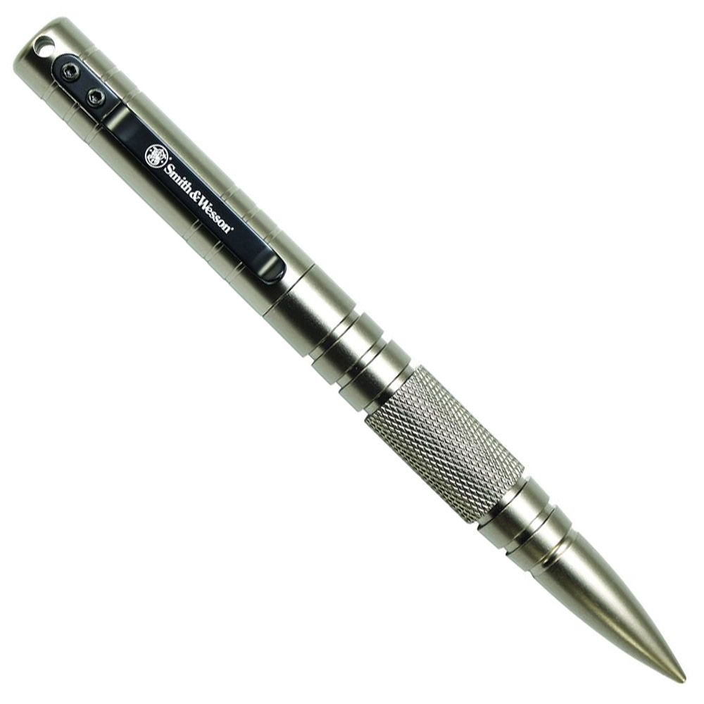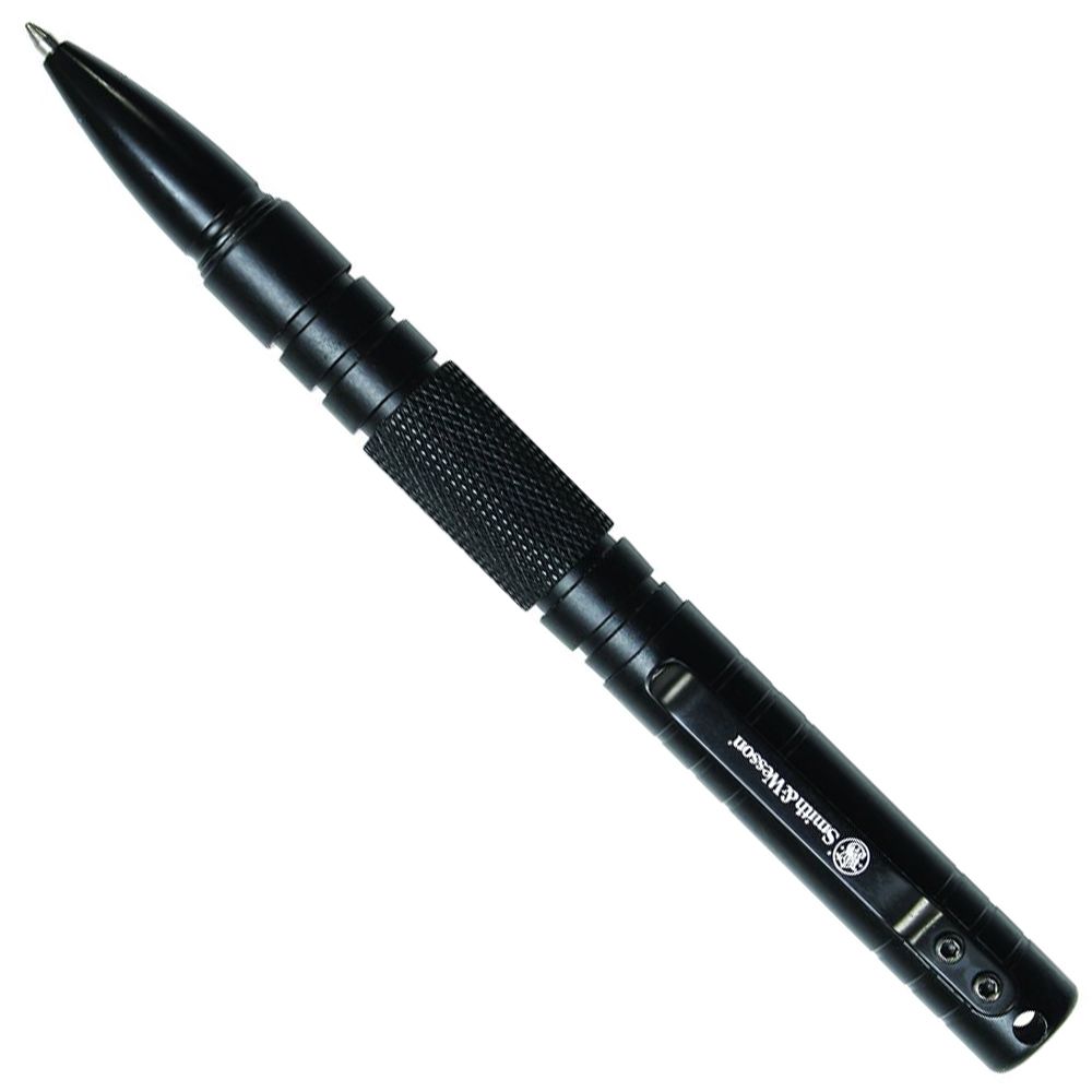 Smith & Wesson Military & Police Tactical Pen is made from CNC Machined T6061 Aircraft Aluminum and features a pop-off pen cap with a lanyard hole and pocket clip. The pen includes one Schmidt P900M Parker style black ball point ink cartridge.