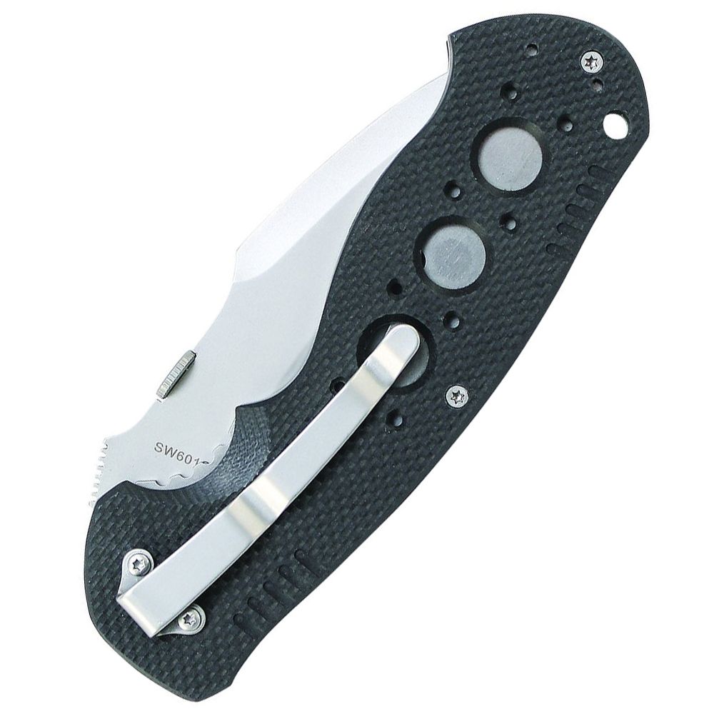 Smith & Wesson Liner Lock Folding Knife, 7Cr17MoV High Carbon Stainless Steel Partially Serrated Drop Point Blade with Ambidextrous Thumb Disc, Thumb Rest, and Thubm Ramp Jimping, Black G-10 Handle with Lanyard Hole and Pocket Clip