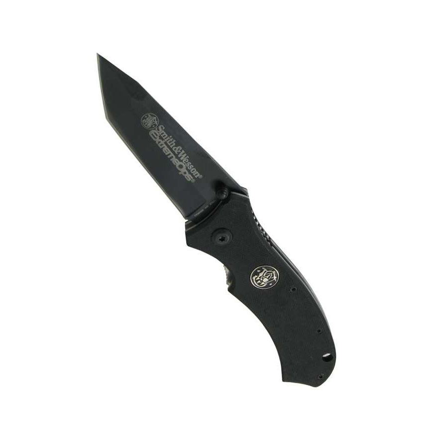 This single blade, lock-back design knife has a G10 handle with a pocket clip, and liner blade-lock. It can be opened and closed with only one hand.