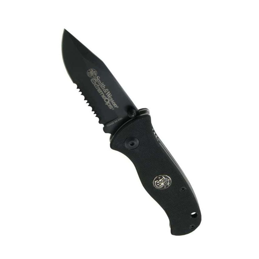 This single blade, lock-back design knife has a G10 handle with a pocket clip, and liner blade-lock. It can be opened and closed with only one hand.