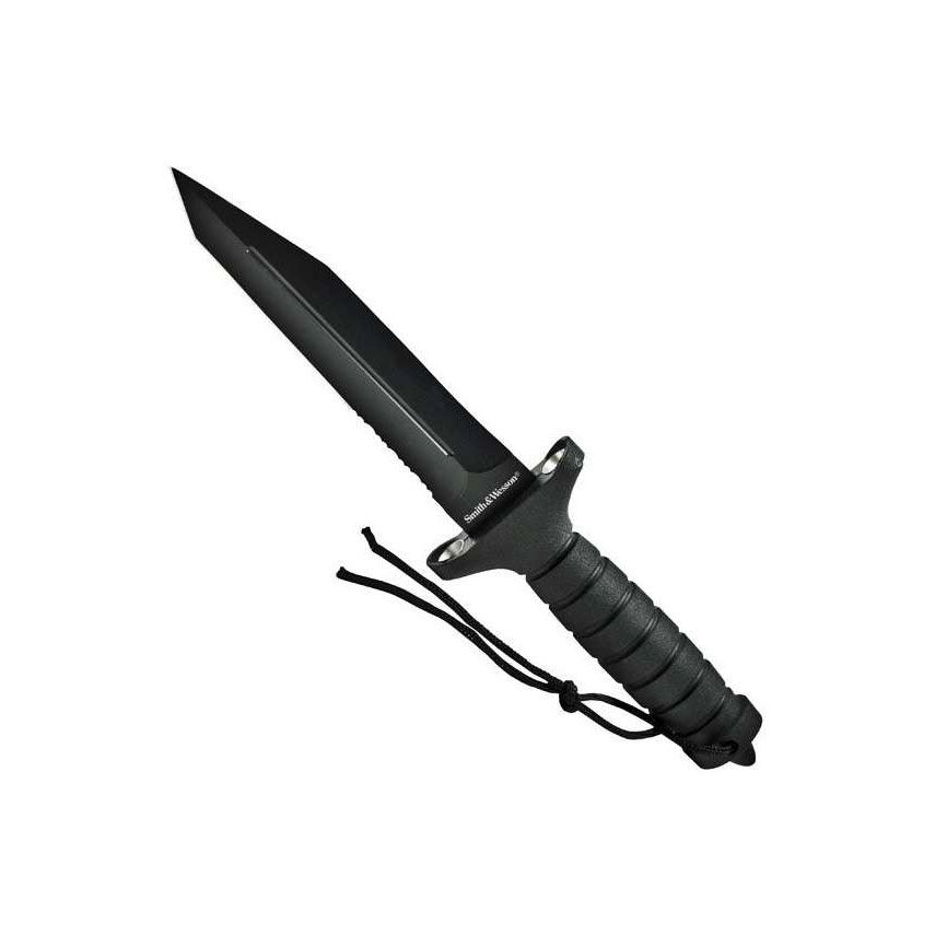Smith & Wesson H.R.T. tanto fixed blade with pomel and sheath serrated