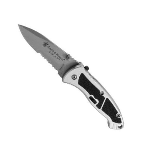Smith & Wesson Knives Large Part Serrated SWAT Assisted Opening Linerlock Knife with Anodized Aluminum Handles