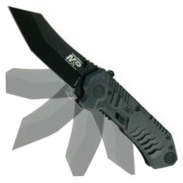 Smith & Wesson SW-SWMP2B Black Military and Police Knife with MAGIC Assisted open and Scooped Back Tanto Blade