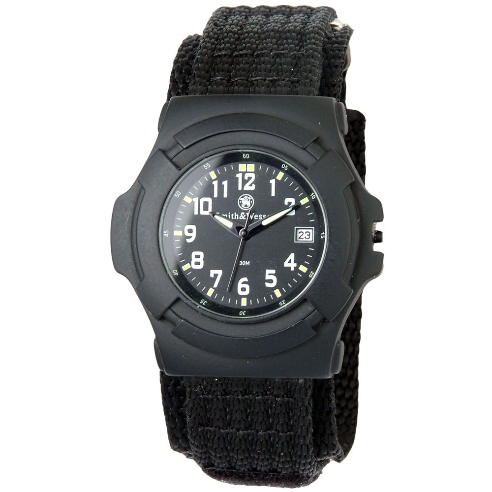 Smith and Wesson Lawman watch is of good quality and extremely durable. The watches, earlier used to be a necessity, now with great range of varieties has become style statement. Understanding the demand for design and quality, has come up with precision quartz watch with Japanese movement. The watch is stylish and trendy yet functional. It is water resistant. The watch is lightweight and smooth on your skin. The wrist band is made of good quality nylon material with Velcro. It has a black face with provision for date. The watch has back glow light which makes it convenient to see the time in the dark. It is neatly packed in a box.