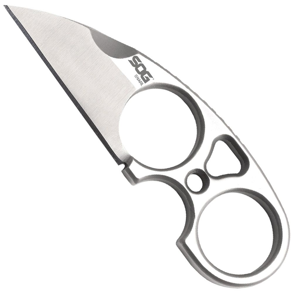 Designed with Jason Brous, a distinguished knife maker and lifelong machinist and metalworker, the Snarl is a fixed blade made from thick quarter-inch 9Cr18Mov steel. Brous prefers to use stock removal and ground bevels to create his functional art knife designs. This stealthy neck knife has a 2.3-inch sheepsfoot style blade and a unique handle. The handle has two finger holes and jimping for different grips while maintaining ergonomics and comfort. The sturdy build and functional design makes it a great utility blade. It comes with a versatile hard molded nylon sheath with a robust removable clip and ball chain for various carrying options.