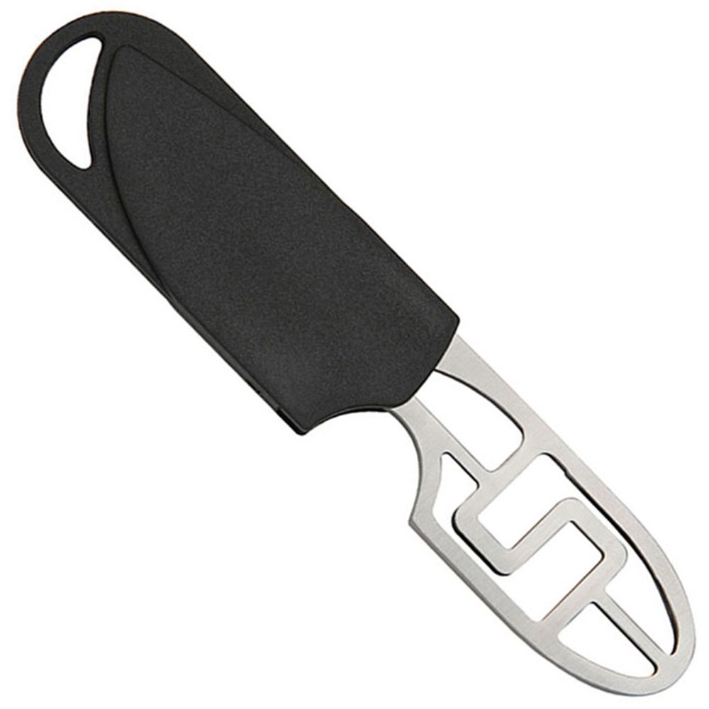 The KA-BAR Snody Administrator is a skeleton fixed blade in a drop point style. The 5Cr15 stainless steel construction is all you need for most everyday tasks. Its compact size and flat design are easy to conceal. Use the handle cutouts to fasten the knife around your neck or to get the perfect grip.