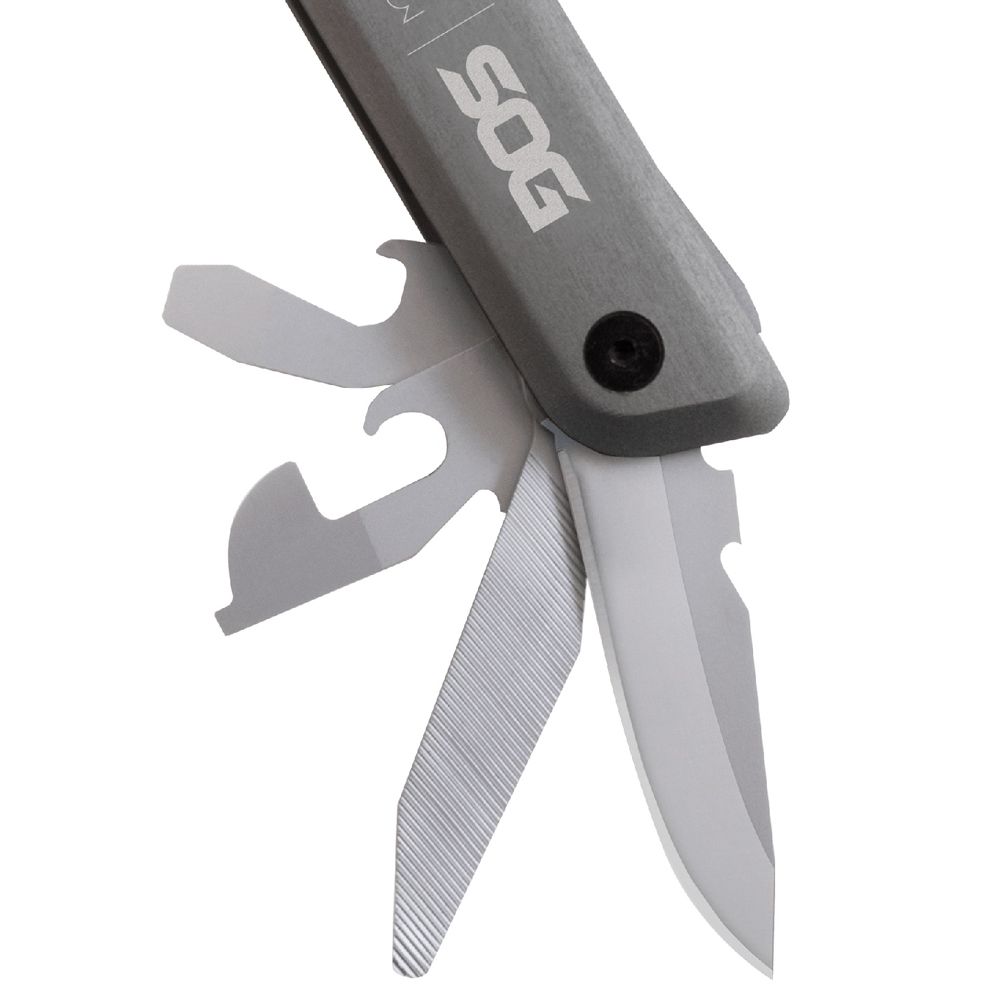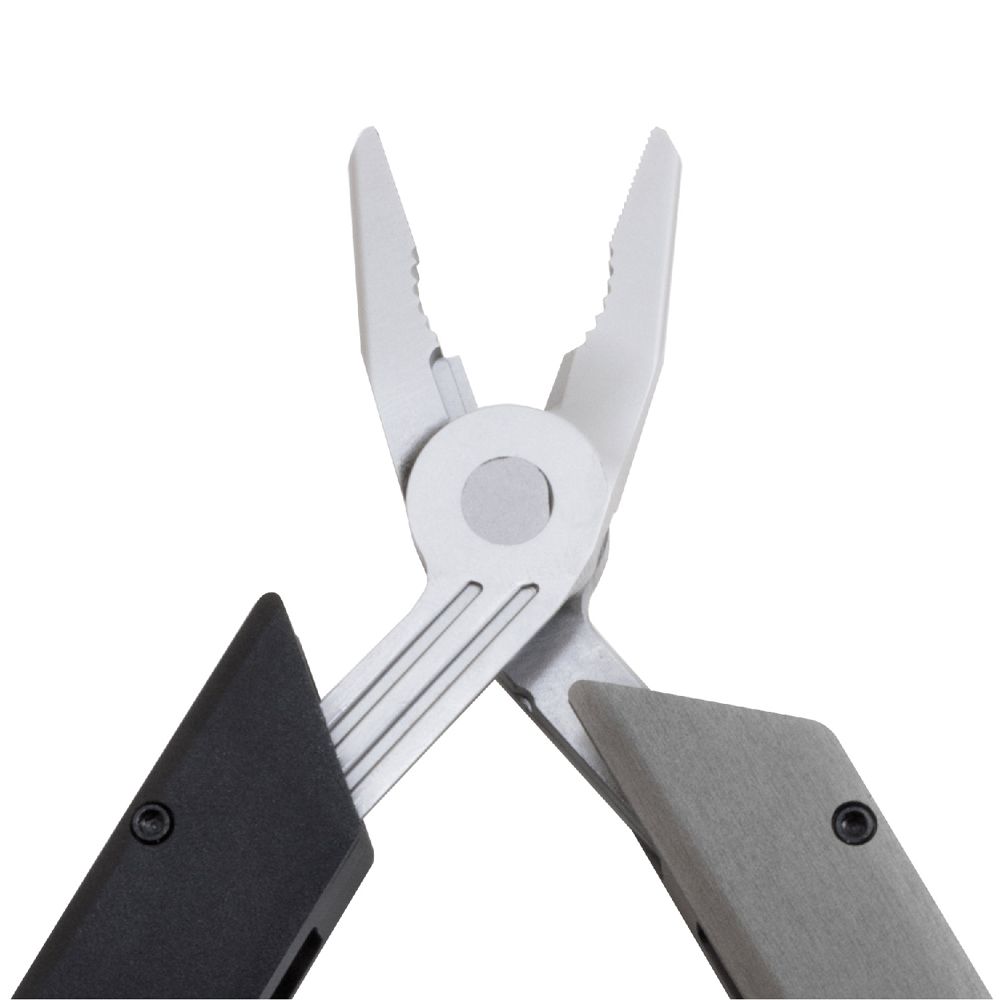 SOG have forever changed the multi-tool game with their Baton series. The Q3 is the biggest and burliest of the bunch, housing an impressive 13 tools chosen with wilderness survival in mind. Housed in a sleek anodized aluminum frame the size of marker, this multi-tool has a powerful set of pliers at its core and a wide array of cutting and shaping implements to support it. The components include: 1.75-inch 5Cr15MoV straight blade, pliers, awl, bolt/nut gripper, bottle opener, can opener, chisel, file (3-sided), small and medium flat screwdrivers, jewelry driver, phillips screwdriver, and wire cutter (soft).