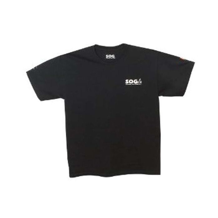 Show your support for SOG with this 100% cotton t-shirt. Machine wash cold - Tumble dry low. Available in sizes Large, XL and XXL. This design includes the classic t-shirt design, as well as the SOG patch on the left shoulder, and Spencer Frazer's signatu