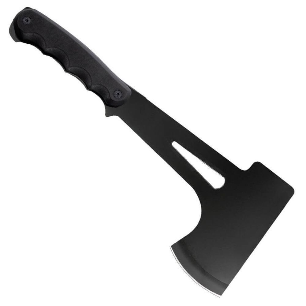 A simple and genuine utilitarian design, the SOG Hand Axe... will perform as a wilderness back pack essential as well as a camp, truck and preparedness tool. We opted to include G10 scales on the handles... for a more aggressive grip. With enough weight to make short order of camp chores, SHAX also will not punish you when carrying on extended adventure trip.