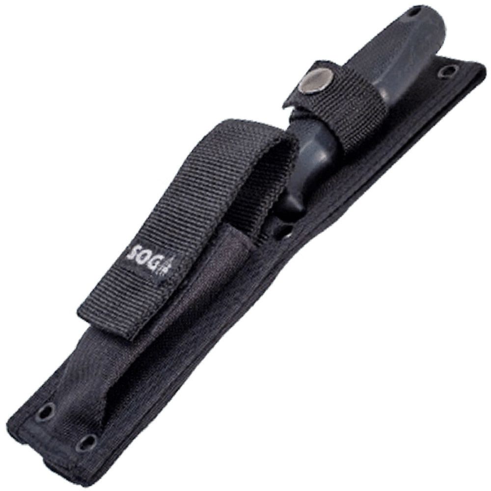 Try on the tactical sheath option for the Field Pup. Input from our tactical advisers indicated that military departments are changing their uniforms and requirements for attaching hardware. We took this information and designed something new in knife carry. This ballistic nylon sheath is designed for all weather cover to protect it’s cargo from sand, dust, moisture, and do it quietly. Our secondary pouch on the front allows you to complete your gear with a SOG multi-tool or folder. The modular mounting system on the back is the most versatile possible; military belts, MOLLE type applications, belts, vests, etc. are all easily mounted to quickly and securely.