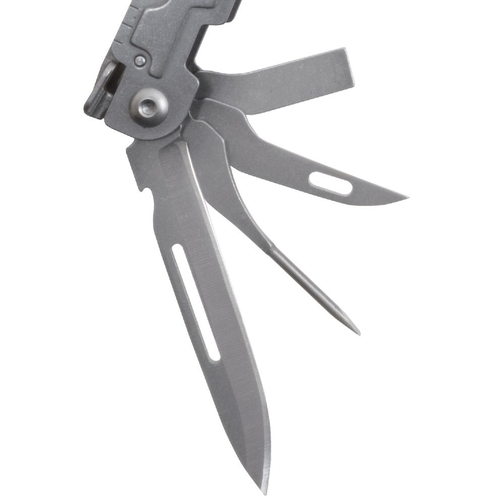 Tools Count: 1. Awl 2. Blade (Straight) 3. Bolt/Nut Gripper 4. Bottle Opener 5. Can Opener 6. Crimpers 7. File (3-Sided) 8. Flat Screwdriver (Large) 9. Flat Screwdriver (Medium) 10. Flat Screwdriver (Small) 11. Hex Bit Driver (Magnetic 1/4") 12. Jewelry Driver 13. Phillips Screwdriver 14. Pliers 15. Protractor 16. Ruler 17. Wire Cutter (Hard) 18. Wire Cutter (Soft).