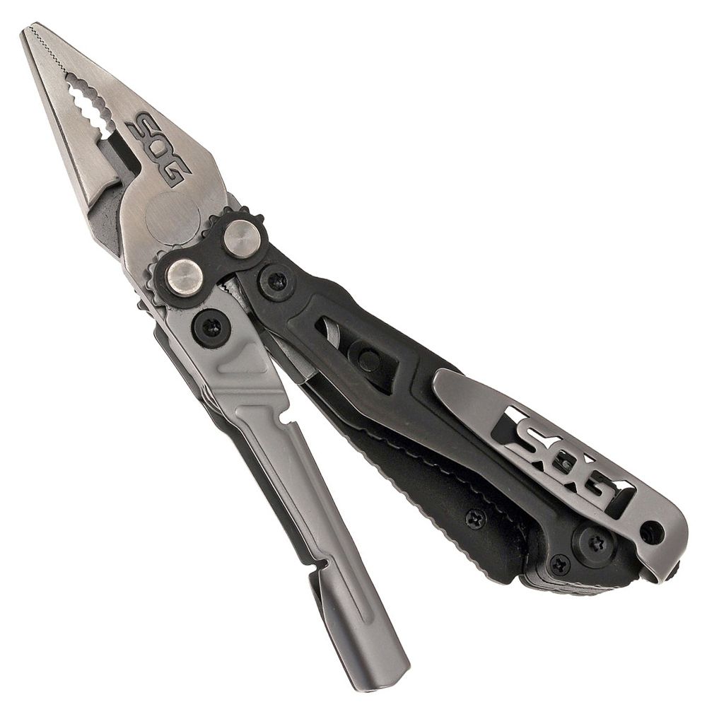 The Reactor’s shape fits firmly and securely in a hand. Tucking the blade back in and flipping the handle reveals the patented Compound Leverage pliers. The SOG-exclusive gearing doubles the grasping force of the jaws for more powerful grip and to reduce stripped hardware. The assisted blade and Compound Leverage pliers with the other essentials make the Reactor a capable and versatile tool.