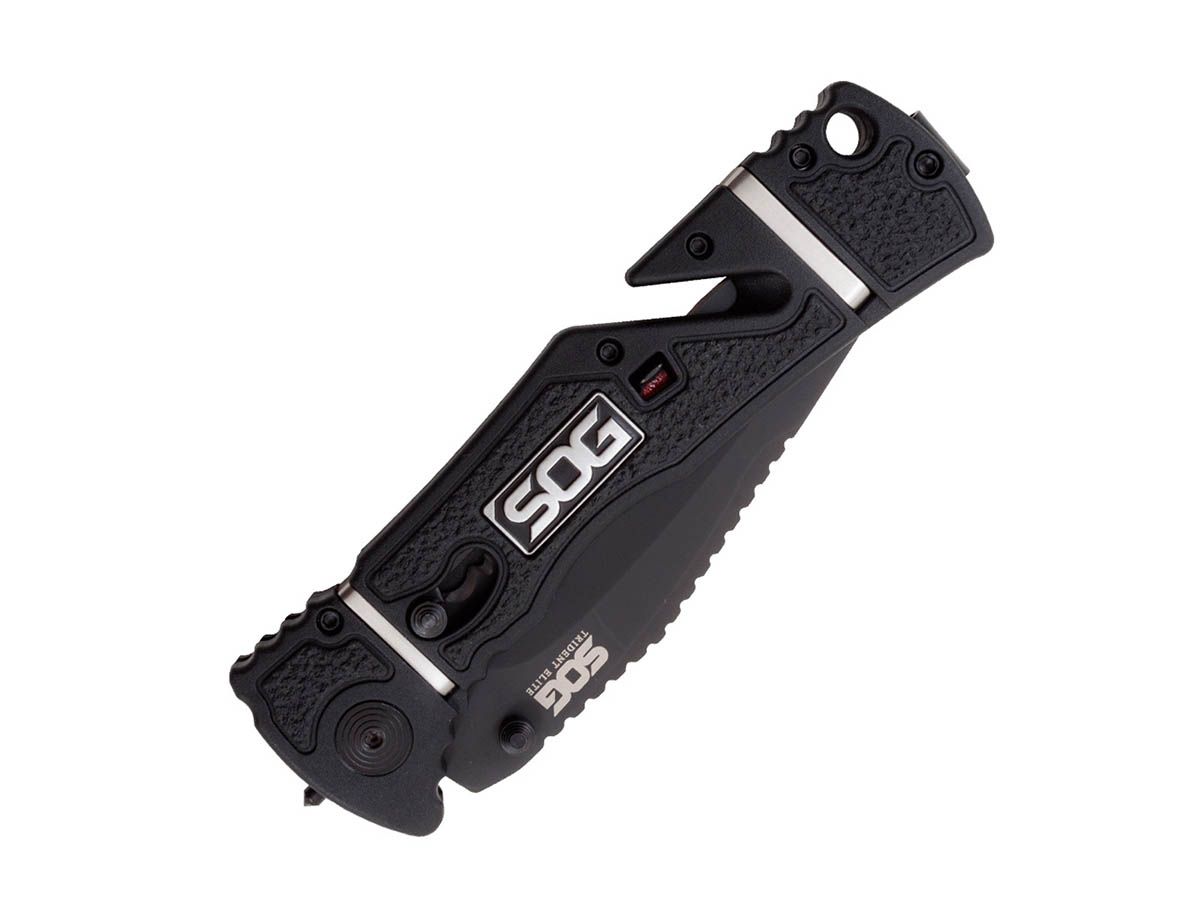 Designed to tackle any emergency, the Trident Elite is ready to go at a moment's notice with its assisted opening mechanism, slot cutter, and glass breaker. The Trident Elite features SOG's patented Assisted Technology for quick one-handed opening. The slot cutter built into the handle can cut thin rope, belts, or webbing without opening the blade. The front of the handle has a built-in glass breaker for any situation. The Trident Elite comes with a 3.7-inch blade made of reliable AUS-8 stainless steel and a durable glass-reinforced nylon handle with textured rubber inserts to improve grip.