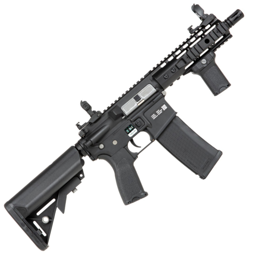 Featuring a brand-new ORION gearbox with reinforced shells and internal parts, the replicas come straight out of the box ready for immediate use and further tuning. They are compatible with LIPO and LIFE batteries and feature anti-scratch nano-coating. This series is integrated with the X-ASR MOSFET system (by GATE Polish manufacturer) which ensures the safety of the components, improves the trigger response, and gives electronic and battery more durability by spotting damaged cells or bad connections in cables. Adapt your gun’s power to your needs and activity with the ESA™ Quick Spring Change System. Quickly change your main spring without the need to disassemble your gun. You are also able to alternate your muzzle velocity with an extra M90 spring that comes with the set. Shoot safely and accurately at any range. A Rotary type hop-up with a 6.03mm tight bore barrel enables you to shoot repeated shots with a more stable variation of BB spin. It is not all. Access your replica’s system motor without any tools with a QD pistol grip.