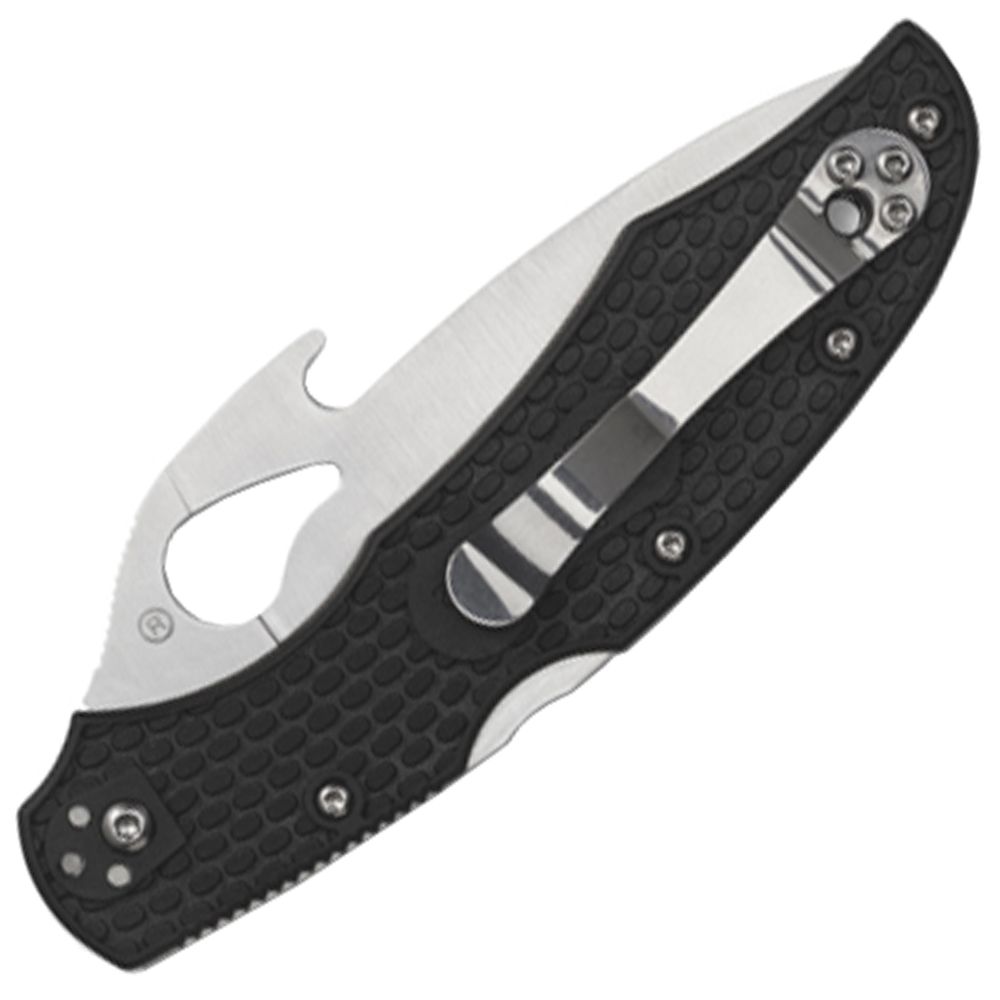 The full-flat-ground blade of this knife is crafted from 8Cr13MoV stainless steel, is available with a choice of edge configurations, and is paired with a lightweight handle featuring non-slip injection-molded FRN scales, skeletonized stainless steel liners, a stout back lock, and a four-position hourglass clip.