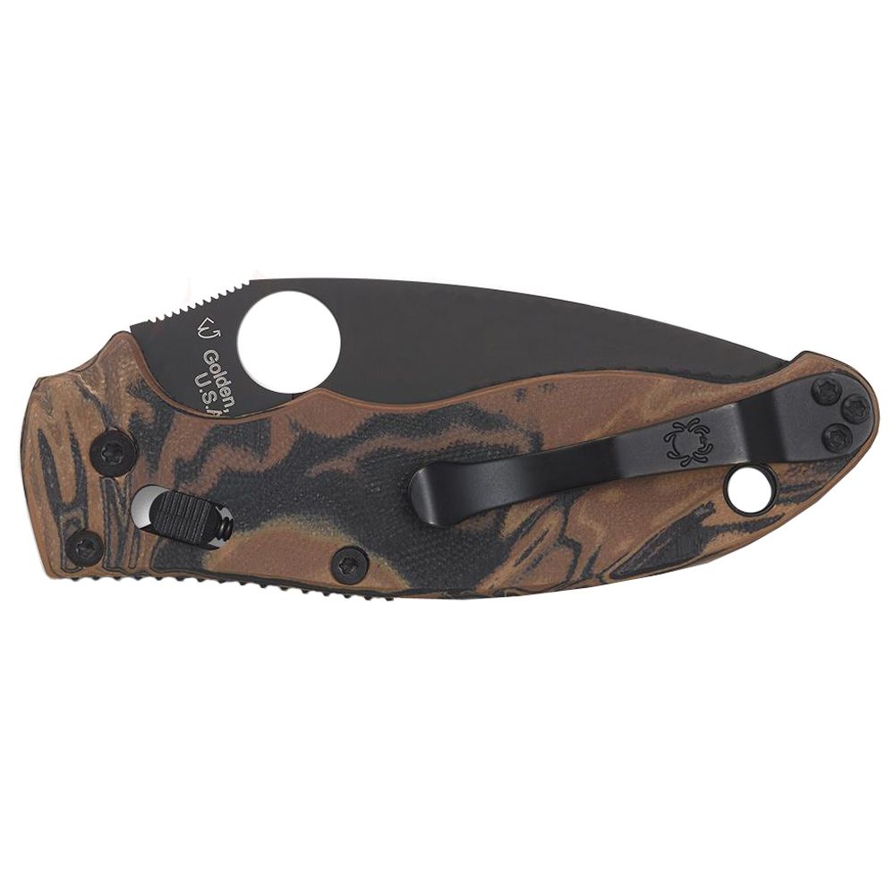Constructed with full stainless steel liners, a stainless steel backspacer and black and brown burled G10 scales, the Manix 2's handle is home to a high-strength Ball Bearing Lock mechanism. One of Spyderco's strongest, smoothest operating lock mechanisms, it consists of a hardened steel ball bearing encased in a polymer cage. When the knife is opened, a spring plunger drives the ball bearing forward onto a ramp on the blade, wedging it securely open. Pulling back on the cage releases the lock and allows the blade to pivot smoothly closed. Both opening and closing are easily performed with either hand and without ever placing your fingers near the blade’s edge.
