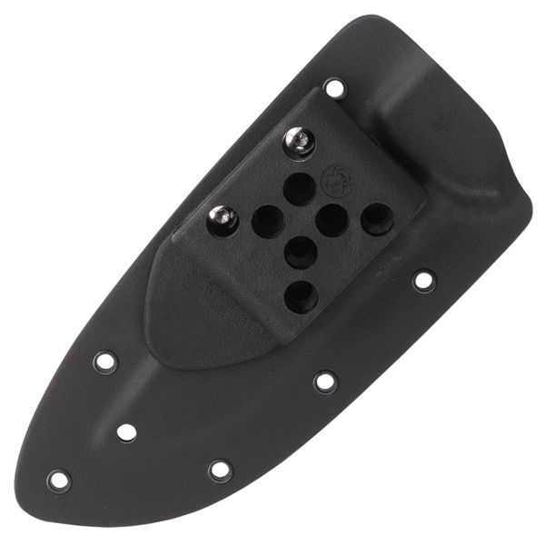 For maximum control and strength, it also features a wide, ergonomic handle and an understated integral guard that helps prevent the user’s hand from sliding forward onto the edge. The knife’s stout full tang is capped by slim, smooth G-10 scales permanently attached with sturdy tubular rivets that reduce weight and allow the knife to be easily lashed to a pole as an improvised survival spear.