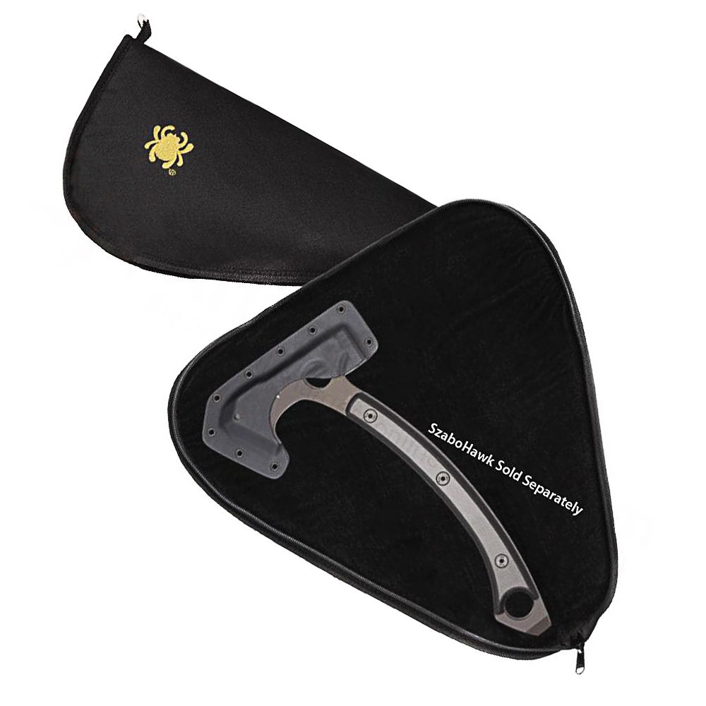Designed specifi cally for the SzaboHawk tomahawk, this heavy-duty zipper pouch is also an ideal accessory for large knives, handguns, and other objects worthy of high-quality protection. Made from tough ballistic nylon material and embroidered with a Spyderco “bug” logo, it features thick padding for 360º protection. 15.25 X 7.25 inches.