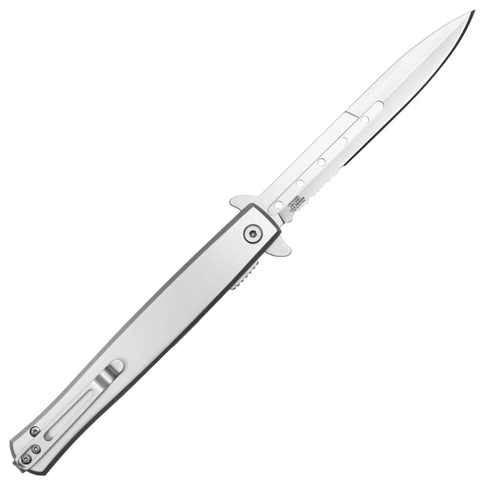 The Wartech 9.5-inch assisted knife is a reliable and durable everyday carry option. With its assisted opening mechanism, the blade can be quickly and easily deployed with one hand, making it perfect for outdoor activities or everyday tasks. The blade is constructed from high-quality stainless steel, providing excellent cutting performance and resistance to corrosion. The ergonomic handle is designed for a comfortable and secure grip and features a sleek black finish with a textured pattern for added grip. The knife also comes with a pocket clip for easy and convenient carry. Overall, the Wartech 9.5-inch assisted knife is a versatile and dependable option for anyone in need of a reliable cutting tool.