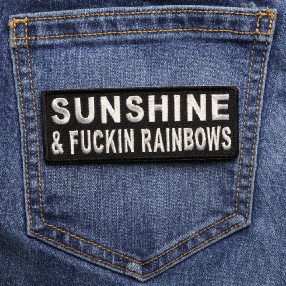 Brighten Up Your Wardrobe With The Sunshine And Fuckin Rainbows Patch! This Embroidered Patch Measures 4x1.5 Inches And Comes In A Bold Black / White Design. Easily Sew Or Iron It On To Denim Or Leather Jackets, Vests, Hats, Backpacks, Or Shirts. With Plastic Backing And Clean Cut Die Embroidered Borders, It’s A Must-Have For Any Collection!