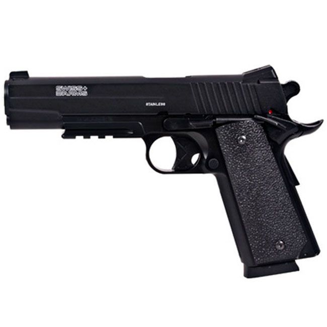 Swiss Arms 1911 Steel BB CO2 Gun is very close to the look, weight, and feel of the real GSR Sigarms! Even the 1911 style trigger was used and licensed trademarks on the slide. The finish is very good and it is almost all metal gun.