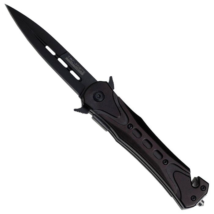 The Tac-Force Black Blade Tactical Folding Knife is a striking and functional tool designed for tactical use and everyday carry. Featuring a sleek black blade, this knife offers a sharp, durable edge for a variety of cutting tasks. The tactical design includes a secure folding mechanism for easy portability and safety, along with an ergonomic handle for a comfortable grip. Perfect for outdoor adventures, self-defense, or daily chores, this knife combines style with practicality in a versatile package.