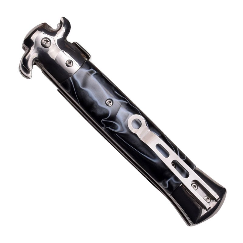 This snazzy stiletto commands respect. Based on the traditional Italian switch blade design, the Premium Milano Collection folding knife features a slender spring-assisted blade with a needle point tip. The ornate handle is affixed with a steel liner lock, mirror polished bolsters and quillons, and decorative inlaid scales for an extra touch of class.