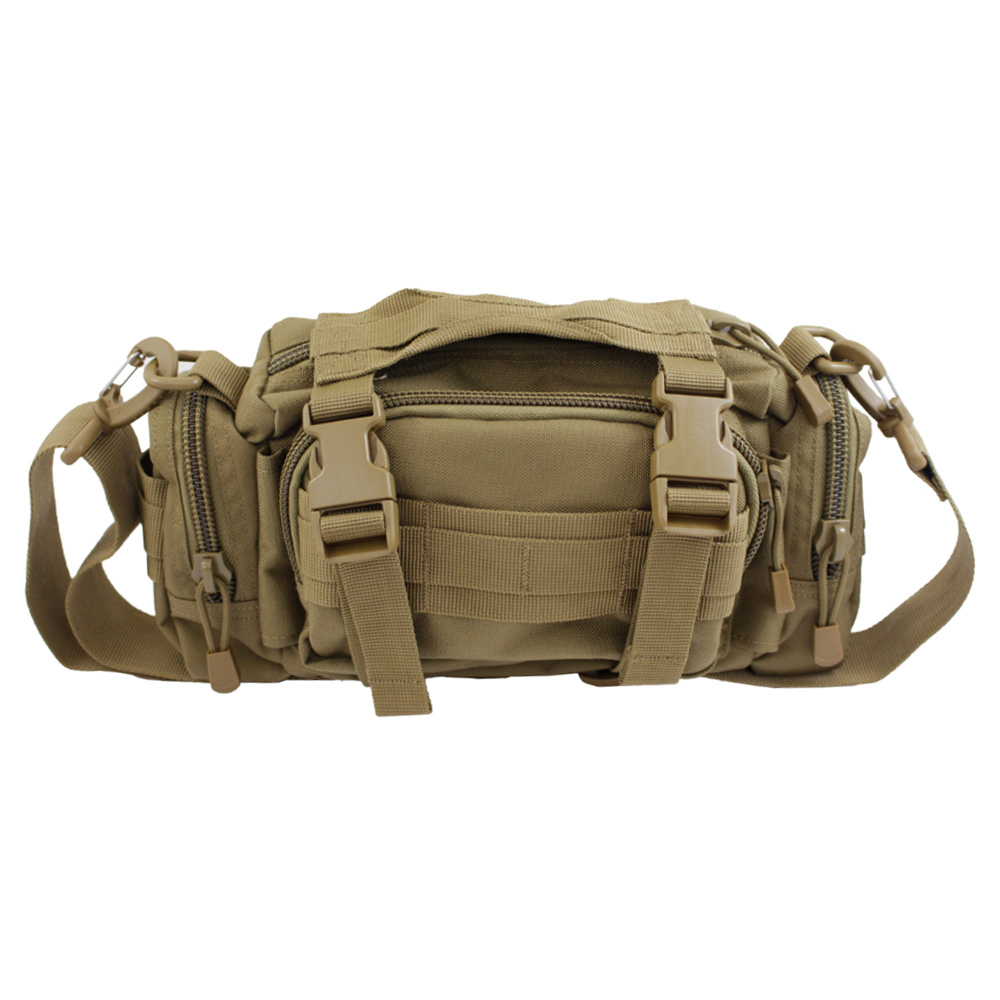 Discover the versatility of our Modular Deployment Utility Shoulder Bag, designed to cater to various needs with its four distinct compartments. Equipped with buckled compression straps, it allows for secure and compact storage. This bag features an adjustable and removable shoulder strap, providing flexibility in how you carry it, whether over the shoulder or as a crossbody bag. For additional carrying convenience, it includes a sturdy web-carrying handle. The bag's modular attachment strap enhances its functionality, enabling you to easily add or attach additional gear. Ideal for on-the-go, tactical use, or daily carry, this shoulder bag combines practicality and ease of use in a compact, efficient design.