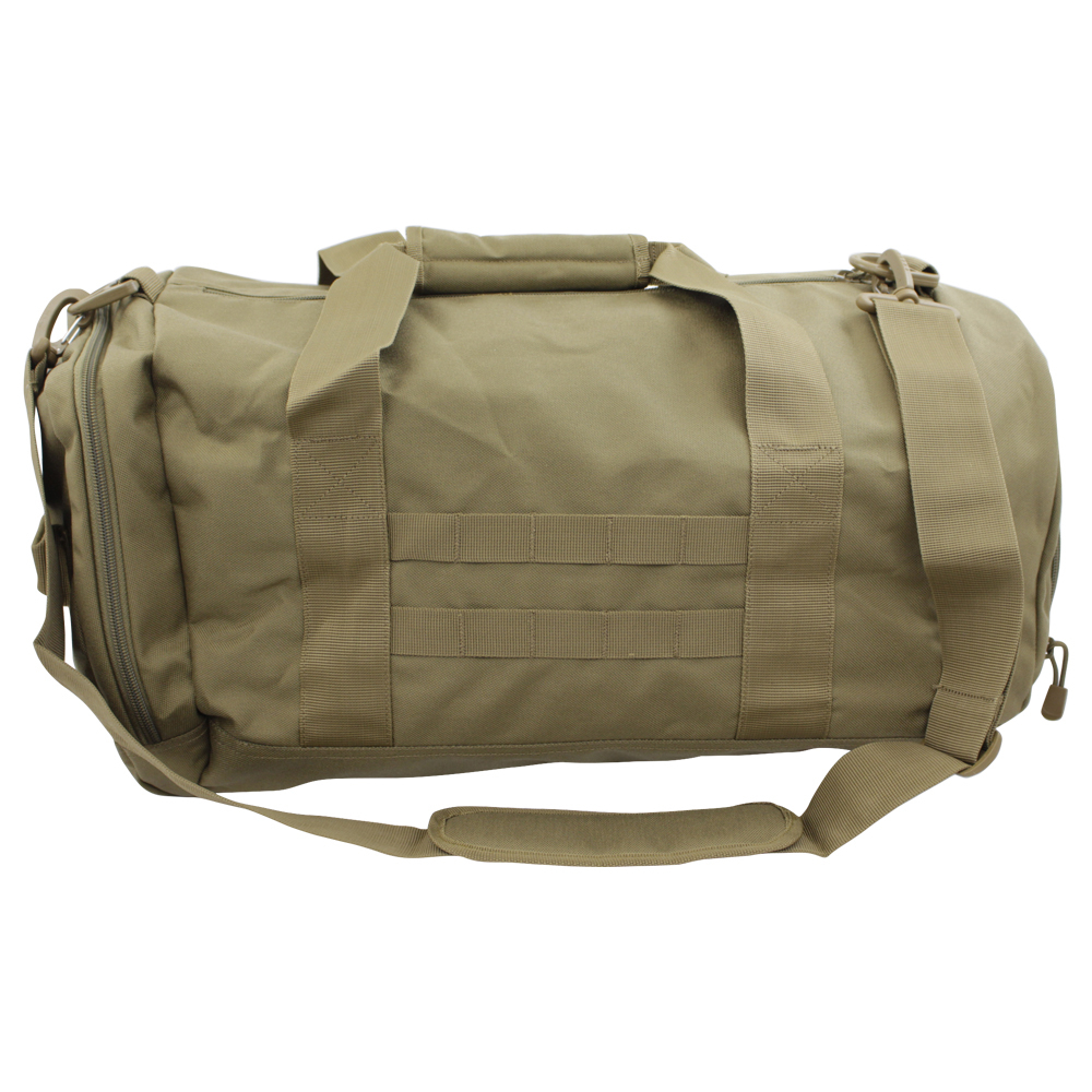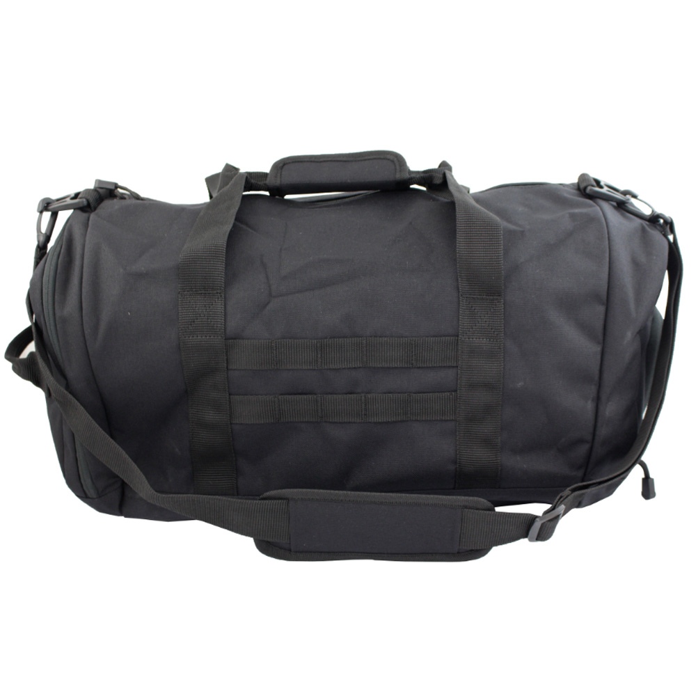 Tactical, practical, and 100% durable, this duffel bag is a must-have. It is made up of a large central compartment with secondary pockets on each side, offering enough storage for all your essential stuff. The padded removable/adjustable shoulder strap and short handles combination offer multiple carry options while the convenient side grab handle is simply perfect for lifting or pulling from shelves, luggage carousels, etc.