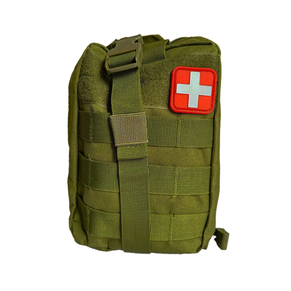 A Tactical First Aid Pouch designed for quick access and emergency preparedness. Built with a rugged tactical design, it comes preloaded with essential first-aid supplies to handle minor injuries, sprains, cuts, and emergency situations outdoors or on duty.