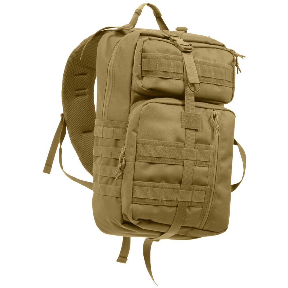 Tactisling Transport Pack features a sling over-the-shoulder strap, which can swing to the front for quick & easy access to important compartments including a concealed carry holster attachment. The tactical pack has a large zippered main compartment with water repellent lining, zippered mesh interior pocket & zippered utility pocket that is ideal for storing all your gear. Not only does the pack have an option for concealed carry, it features 2 large open top accessory pockets with hook & loop closure that’s perfect for a laptop and a zip pocket with horizontal vinyl document sleeve and 2 accessory pockets; there is nothing this bag can’t carry. The one-shoulder backpack has been designed for comfort and versatility; the padded mesh shoulder strap features a 2” quick release buckle with metal clip, ¾” whistle side release buckle, adjustable Y-Shape quick release cinch strap with D-Ring, and storage strap compartment. The pack also features a padded mesh back that allows for breathability, top carry handle, MOLLE Loop Attachments, key ring and top cinch strap.