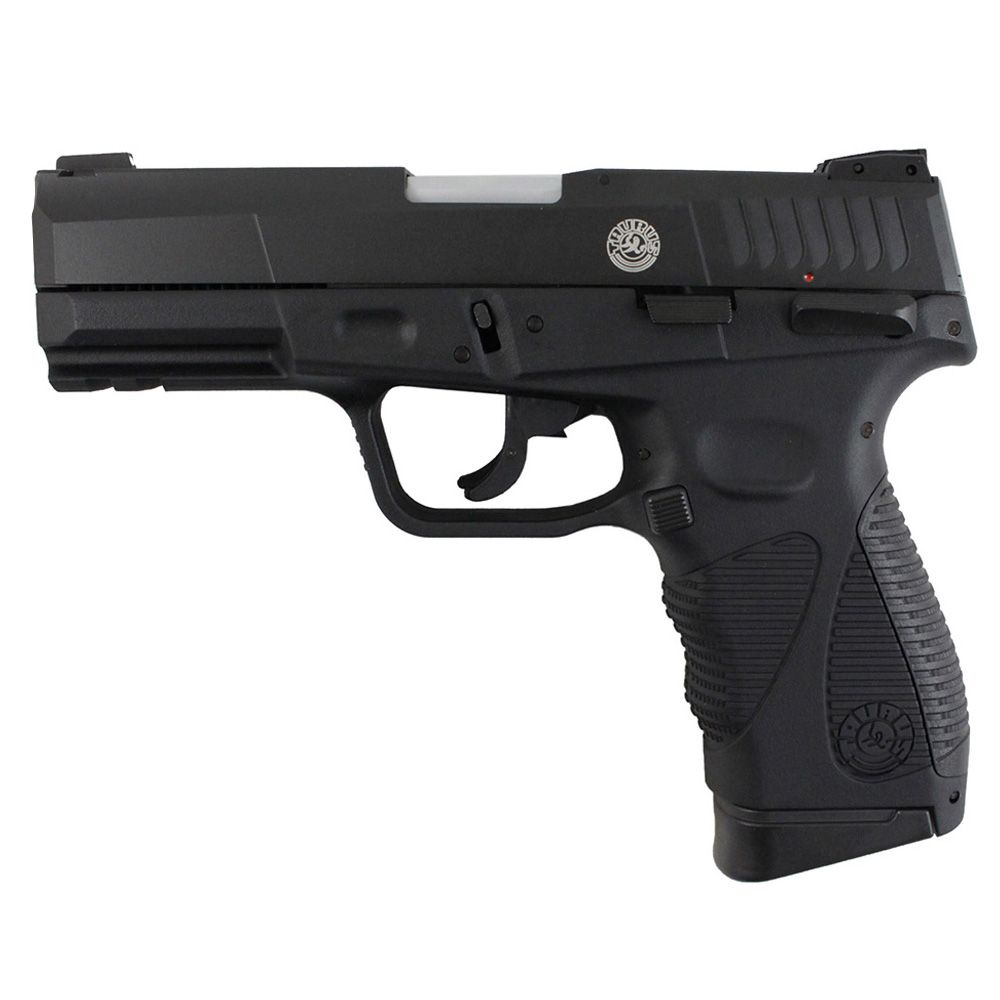 This Cybergun airsoft pistol is a 1:1 scale replica of the Taurus PT24/7 G2. Just like the real steel pistol it has a blowback metal slide, durable polymer frame, and authentic Taurus trademarks. The PT24/7 has a unique ergonomic grip with thick texturing and three interchangeable back straps that can be swapped in to fit any palm size. Firing is doubly secure thanks to a frame safety and trigger safety. A lower 20mm picatinny/weaver rail allows for the attachment of tactical accessories. This model features a sleek matte black finish on the slide and frame.