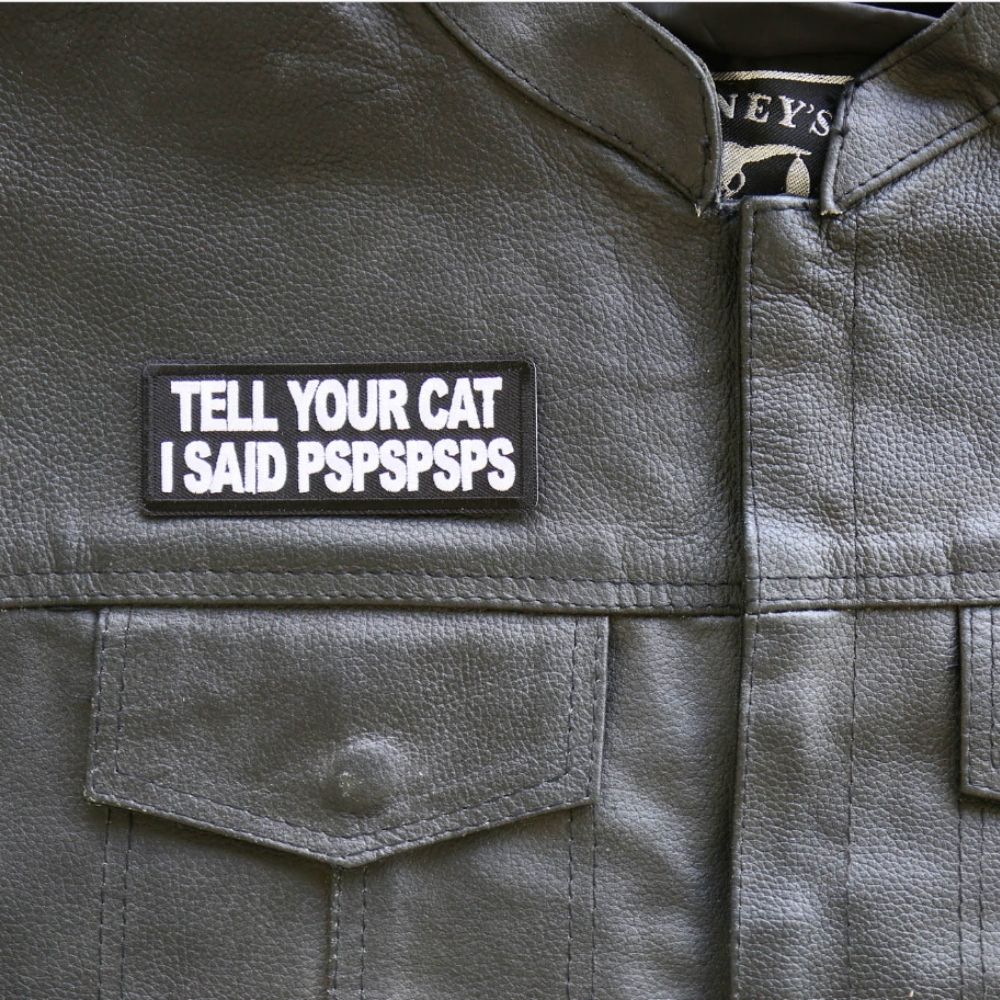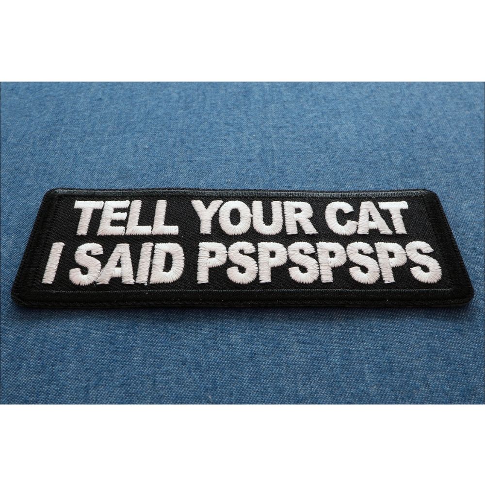 Elevate Your Style With The Playful Tell Your Cat I Said PSPSPS Iron-on Patch! Measuring 4x1.5 Inches, This Embroidered Patch In Classic Black And White Is Perfect For Cat Enthusiasts Who Appreciate A Good Laugh. Easily Iron It On To Shirts, Hats, Or Denim, Or Sew It Onto Your Favorite Leather Biker Jacket For A More Permanent Application. The High-Quality Plastic Iron On Backing And Laser Cut Borders Provide A Professional Finish. For Optimal Adherence, Use A Heat Press At The Recommended Temperature Of 270-290 Degrees Fahrenheit. Make A Statement With This Unique Patch - Grab Your Tell Your Cat I Said PSPSPS Iron-on Patch Today!