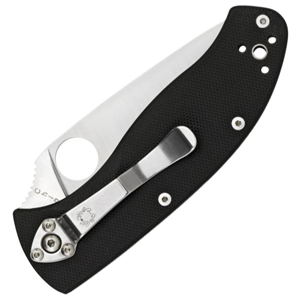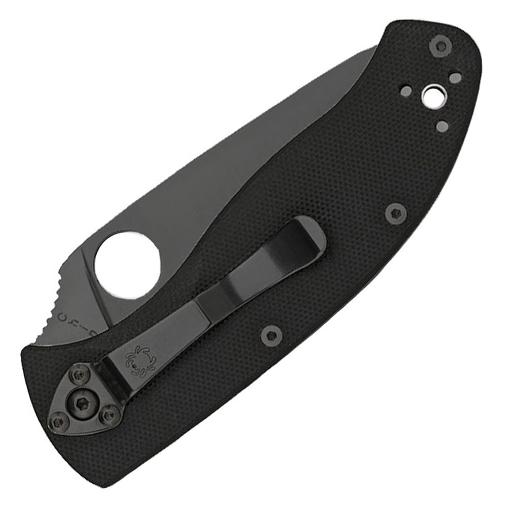The blade's shape, coupled with an oversized Spyderco Round Hole, position the hand for instant and confident blade opening. Sharp from tip to hilt, the Tenacious offers the most cutting edge possible for the blade's length. A black 4-way pocket clip lets the folder be set in a variety of carry and draw positions: Tip-up/tip-down left-hand/right-hand.
