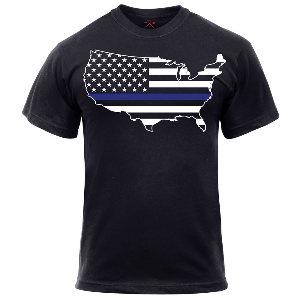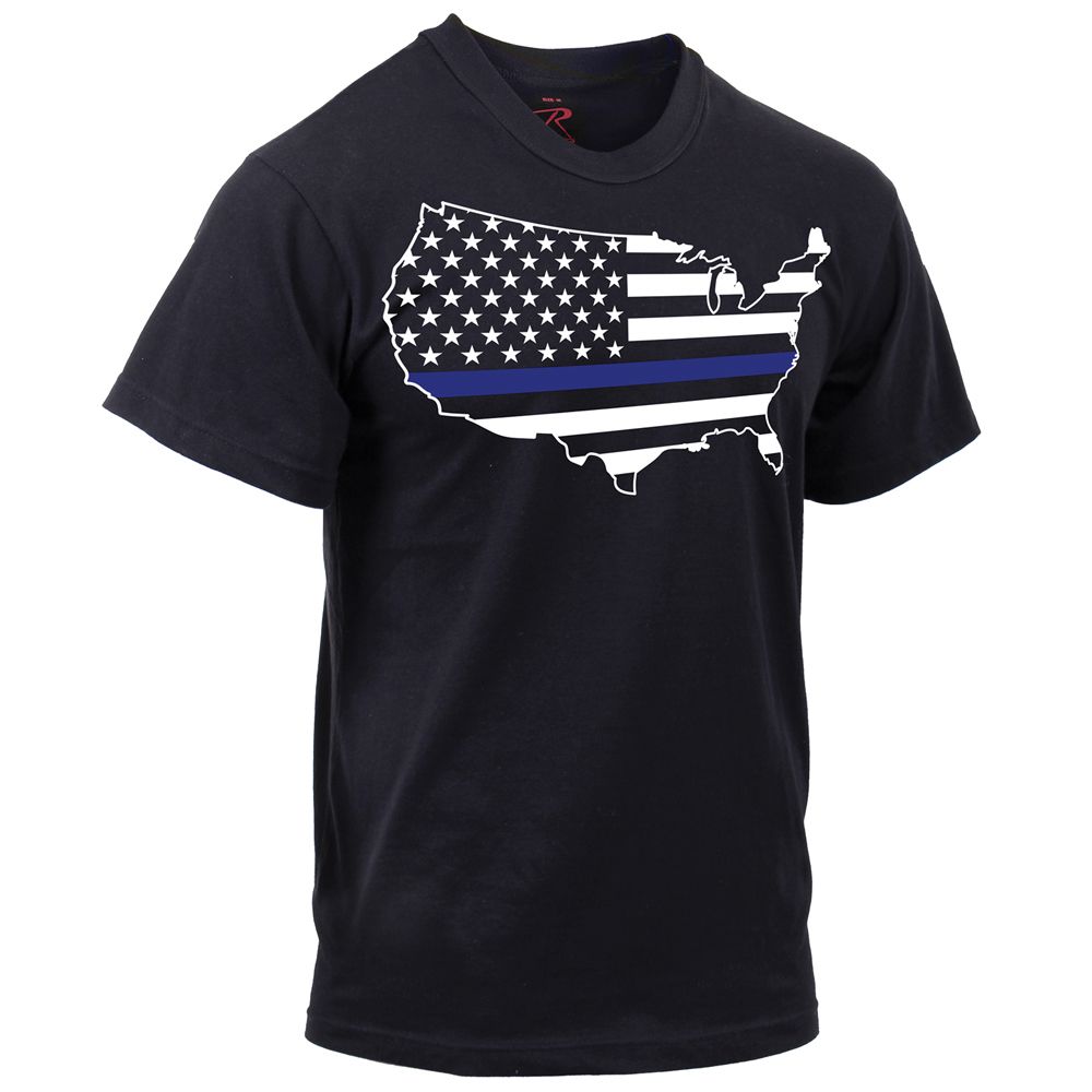 The Thin Blue Line is a symbol of respect and support for Police and Law Enforcement Officials; show your support with the Rothco’s Thin Blue Line America T-Shirt. This police line shirt features an American map shaped Thin Blue Line flag print on the centered chest, and it made of a super soft and lightweight 60% cotton / 40% polyester blend material. The tagless label allows you to wear this USA map Thin Blue Line shirt with the utmost comfort.